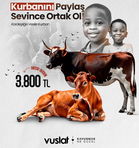 “Kardeşliğe Vesile Kurban” çağrısı ile vacip kurban çalışmalarına başlayan Vuslat, her yıl olduğu gibi bu Kurban Bayramı’nda da bağışçılarından vekâlet alarak yurt içinde ve yurt dışında kurban organizasyonu çalışmalarına başladığını duyurdu. Dernek, Afrika ve Asya kıtasındaki kurban çalışmalarıyla birlikte ülkemiz ve Gazze’de de kurban faaliyeti düzenleyeceğini açıkladı. Yapılan açıklamada, kurban hisse bedelinin Afrika ve Asya’da…